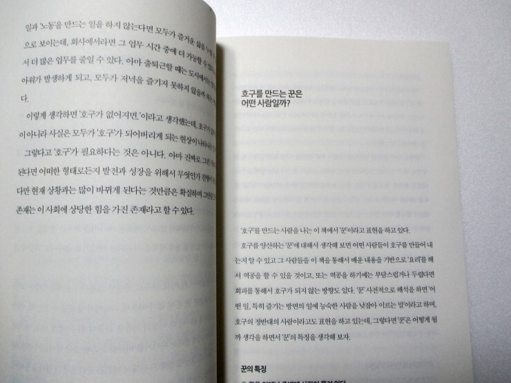 그렇게 정리하다 보니 어느덧 내가 ‘호구’라는 존재에 대해서 도움을 주고자 했다는 생각을 하게 되었죠. 바가지를 당하면서 금전적인 손해를 입고, 누군가에게 무감정 노동을 당하고, 그로 인해서 시간 낭비까지 발생하는 사람. 하지만 어떻게 변화를 줘야 할지 모르는 그들을 위해서 내가 알고 있는 방법을 알려 준다면 분명히 도움이 되지 않을까? 이 생각만으로 몇 날 며칠을 생각하고 고민하고 연구하면서 정리된 내용이 바로 이 ‘호구 탈출의 정석’입니다. 저는 학교에 다니는 12년 동안 글짓기 대회에서 입상해 본 적도 없지만, 내가 전달하고자 하는 것은 책에 검은색으로 적혀 있는 글씨가 아닌 그 글씨 속에 담겨 있는 메시지를 전달하여 정말 손해 보면서 세상을 살아가는 사람에게 필요한 책이 될 수 있을 거라 자부합니다. 그래서 제가 만든 책이 서점에 놓이게 된다는 설렘보다 내가 알고 있는 경험과 지식을 담아낸 이 책을 통해서 누군가가 정말로 지금보다 나은 삶을 살 수 있게 된다는 기대감에 더 설렘을 느끼고 있습니다. 다만 걱정되는 것은 이 책을 통해서 제가 되지 않기를 바라는 그러한 모습으로 변화가 되는 것이 아닐까 하는 두려움이 있기도 합니다.