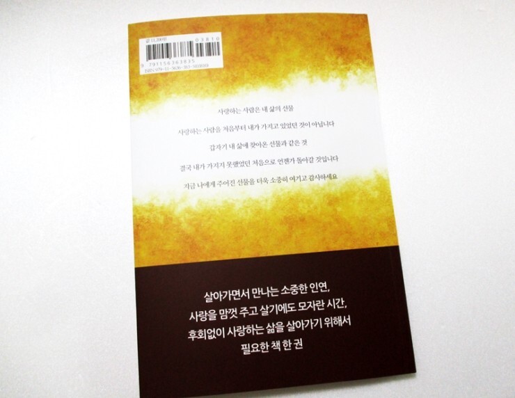 길면 100년 결국 모두 흙으로 돌아갈 존재이기에 내가 만난 소중한 존재에게 사랑을 다 주기에도 아까운 시간, 후회 없이 사랑하는 삶을 살 수 있기 위해서는 꼭 이 책을 읽을 필요가 있다.