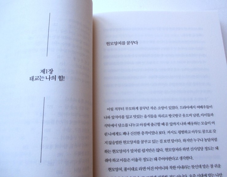 육아를 전공한 것도 아니지만 어릴 적 막연하게 꿈꿔오던 좋은 엄마를 몸소 실천하며 살고 있는 그녀다. 아이를 갖고 낳고 기르는 일은 정말 중요하며 경건한 일이라고 말한다. 그 소중하고도 경건한 일을 그녀는 자신의 삶에서 1순위로 두고 차근차근 준비했다. 그녀는 아이를 가지기 전부터 몸과 마음을 가다듬고 준비했다. 아이는 그렇게 가져야 한다.