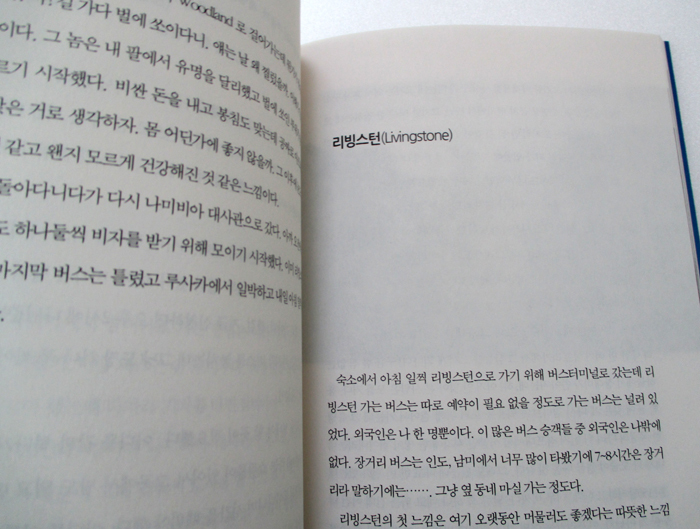 이 책은 아프리카를 준비하는 여행자들에게 작은 도움이나마 됐으면 하는 바램에 쓰기 시작했고 몇 개월의 수정 기간 끝에 드디어 이렇게 나오게 됐습니다.