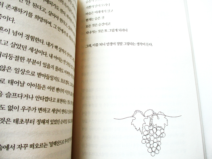 사람이 또 한 사람을 키운다는 것. 자식을 양육한다는 것. 인류의 모든 어머니가 해 온 일이기에 때론 특별하게 보이지 않을 때도 있다. 하지만 난 확실히 하루하루 더 ‘특별해 지고 있는 것’ 같다. 한 아이의 엄마로, 내 아들의 엄마로, 더 지혜롭고 더 사랑스러운 사람으로. 그리고 이따금 전보다 더욱더 ‘욱’하는 사람으로._149