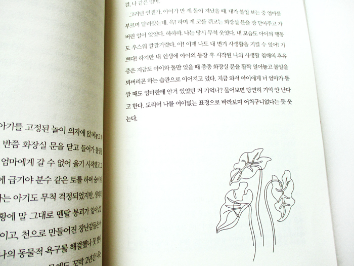 아기를 낳고 엄마가 된 여자들이 만나면 서로 저마다 제 아이 이야기를 한다고 하죠. 어제 한 이야기를 오늘 또 하고, 오늘 한 이야기를 내일 또 할 거랍니다. 그런데 그 이야기들은 들어도 들어도 재미있고 또 궁금해요. 마치 근사한 무용담처럼요. 사실 모두 저마다 다 다르죠. 같은 상황이 없어요. 아이를 낳는 것, 아이가 세상에 태어난 것, 나아가 그런 아이를 키우는 이야기는 세상에서 가장 핫한 이야기 중의 하나예요.