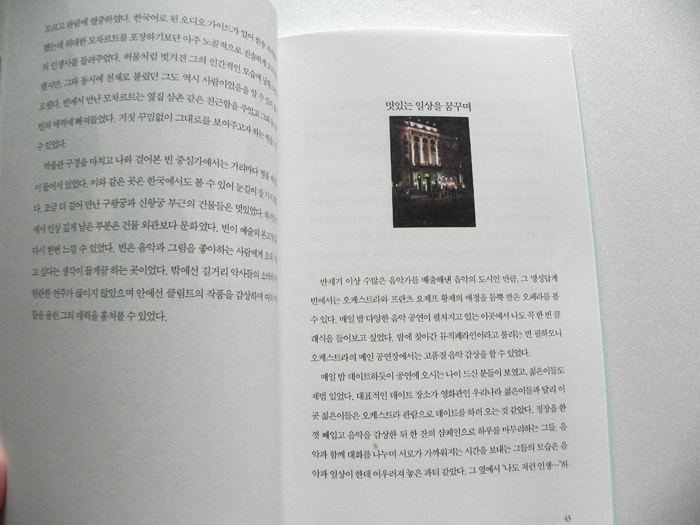 우리는 새벽까지 술을 마셨다. 구체적으로는 머핀, 케이크 그리고 튀김을 안주 삼아 세 명이 샴페인 한 병과 백포도주 한 병을 비워냈다. 이때는 다른 날과 달리, 대화보다 멀리 있는 소중한 이들에게 소식을 전하고자 힘썼다. 맛있는 음식을 먹는 동시에 한국에 있는 친구들과 가족에게 엽서를 쓰며 그들의 소중함을 되새기는 이 시간이 좋았다._125p