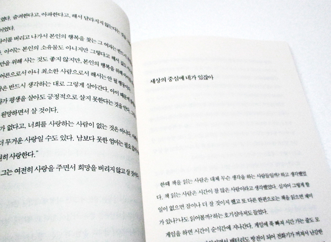 내 안에 아픔이 있다고 해서 아파하지 말고 힘들어하지 않았으면 한다. 아프다고 해서 안 아파진다면 아파하라고 하겠지만, 또 힘들다고 해서 힘이 안 든다고 하면 힘들어하라고 하겠다. 백날을 아파하고 힘들어해서 아무것도 해결되지 않는다. 오히려 아픔과 힘듦이 눈덩이처럼 불어나 결국 절망 속에서 헤어나질 못하는 삶을 살게 될 것이다._41