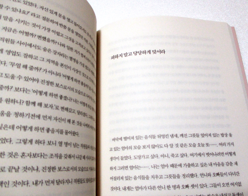 지나고 보니 사람이 살면서 여러 가지 경험들과 일들을 겪게 되는데 거기에는 그만한 이유가 있고 후에 있을 일에 대한 대비책이 아닌가 싶다. 병든 시아버님을 모셨던 것, 시집살이, 완고한 남편의 이야기가 내가 직원들과 함께 생활하면서 그들에게 해 줄 이야기가 많다는 것을 깨닫게 된 것이다._62