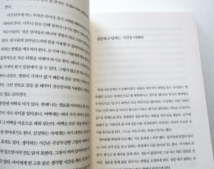 가장 중요한 나와 아이와의 변수에 따라 독특한 육아법의 작품이 나온다. 들에 핀 꽃이 아름다운 것은 자신만의 색과 향을 가진 고유함에서 비롯된다. 아이 키우기도 자신만의 원칙을 넣고 빼는 과정 등을 통해 정립하는 것에서 더욱 의미가 살아날 것이다.