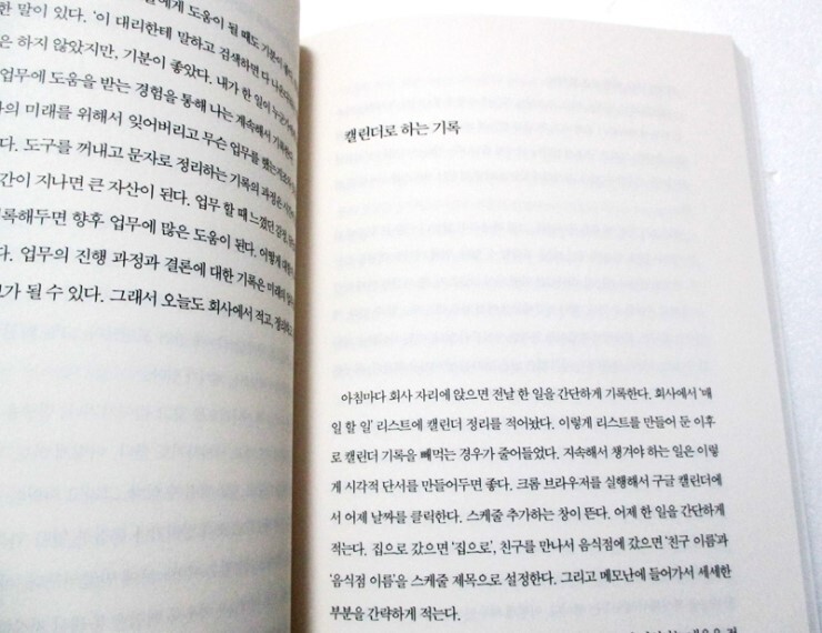머릿속에 남기는 것만으로는 부족하다. 찾을 수 있도록, 기억할 수 있도록 도와주는 수단이 있어야 한다. 휘발성 기억을 비휘발성 기억으로 잡아두는 과정이다. 그리고 적당한 곳에 수납해 두고, 필요할 때 찾아 쓰면 된다. 이렇게 쌓은 기록은 든든한 나의 지원군이 된다._115