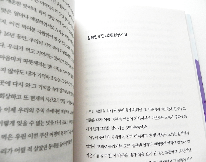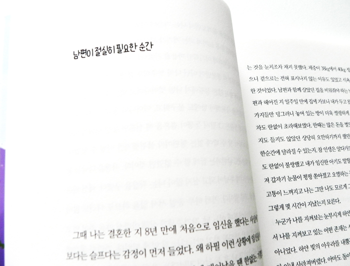 작지만 내 몸과 마음이 쉴 수 있는 공간이 있다는 것과 일을 할 수 있는 직장과 무엇보다 우리에겐 이 세상에서 가장 소중한 아기가 있으므로 세상 아무것도 부러울 게 없다는 생각이 들 만큼 작은 것에도 그저 만족하며 소박한 삶을 기쁘게 살아갔다._33