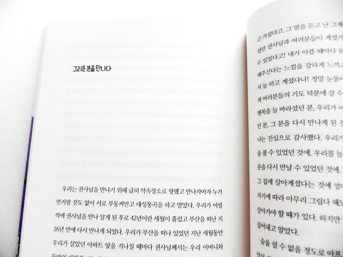 아이가 우리에게 안겨주는 기쁨은 하루하루 힘들고 고단한 생활을 잊게 만들어주는 묘약 같았다. 자리에서 누워만 있었던 아기가 기어 다니기 시작하고 곧 걷게 되고 말을 하지 못했던 아이가 옹알이를 시작하고 말귀를 알아들으며 엄마 아빠라는 단어를 말로 표현하게 되었을 때 느끼는 감동은 어떤 다른 감동보다 감격적이었으며 경이로운 최고의 경험이었다._33