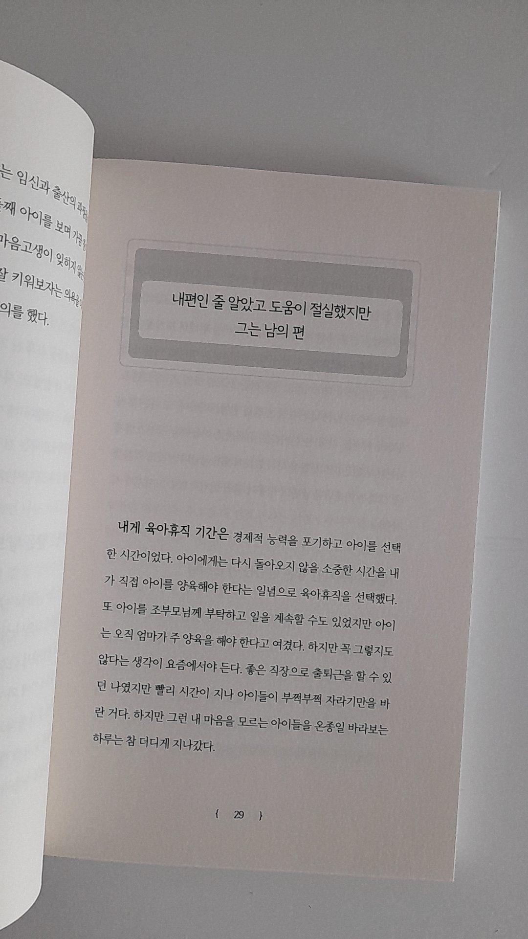 끝이 보이지 않는 긴 터널과 같은 막막함을 안겨 준 육아, 또한 녹녹치 않은 워킹맘의 생활은, 내가 무엇 때문에 이렇게 힘들게 살아야하나 라는 질문을 끊임없이 하게 했다. 하루하루 고단한 일상 속에 발생하는 문제 또한 해결하려 했지만 쉽지 않았다.