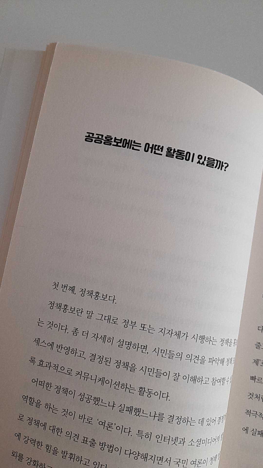 이 책은 그 빈자리를 채워준다. 이론부터 실무 팁에 이르기까지 20여 년간 홍보 업무를 경험해 온 저자의 노하우를 담은 이 책은 공공홍보 업무에 처음 발을 들여놓는 이들에게 훌륭한 길잡이가 될 것이다.