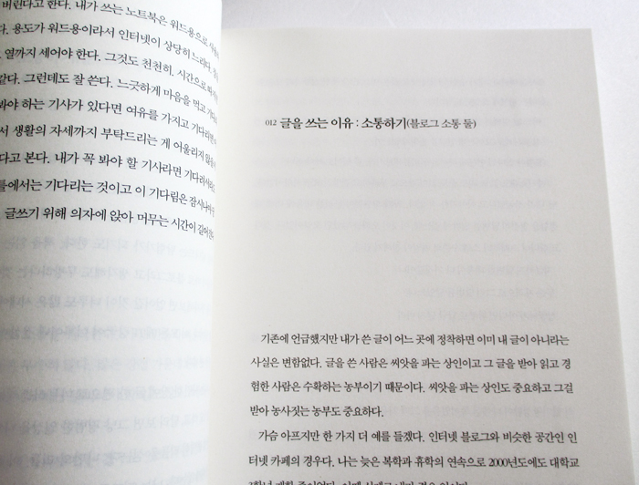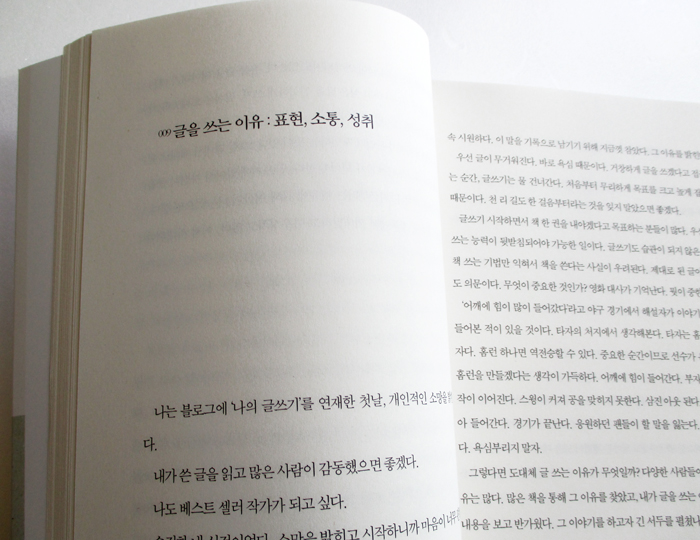 글은 소통하기이다. 장기 자랑이 아니라는 말이다. 글로써 자신을 뽐내려고 하지 말자. 조금 잘 쓴다고 우쭐대지도 말고 그렇다고 못쓴다고 주눅 들지도 말자.--- p.75