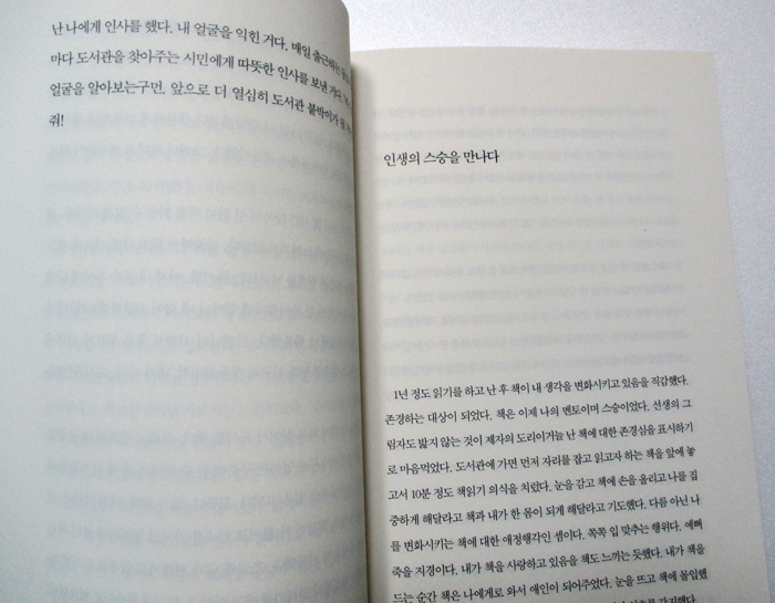 퇴직 후 도서관에서 3년 동안 읽은 책이 내 삶을 바꿨다. 가벼운 몸으로 재탄생했고 건강을 되찾았으며 인생고민과 물욕으로부터 자유로워졌으며 내가 좋아하는 일에만 몰입하게 되었다. 참을 수 없도록 내 인생이 가벼워졌다.--- p.8