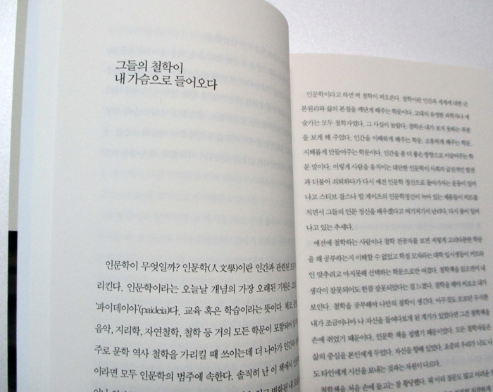 처음에는 책을 읽는 일도 쉽지 않았지만 참고 읽어 나가기 시작했다. 책을 읽자 놀라운 일이 벌어졌다. 인문학 책을 읽으며 무거운 그녀의 인생이 조금씩 가벼워졌다. 항상 밖을 향하던 그녀의 시선이 어느 순간 자신의 마음을 향하고 있었다. 책을 통해 자신과의 애정행각을 하면서 쨍하고 해 뜰 날이 찾아온 것이다. 골 때리던 그녀의 인생에 한 줄기 빛이 비쳤다.