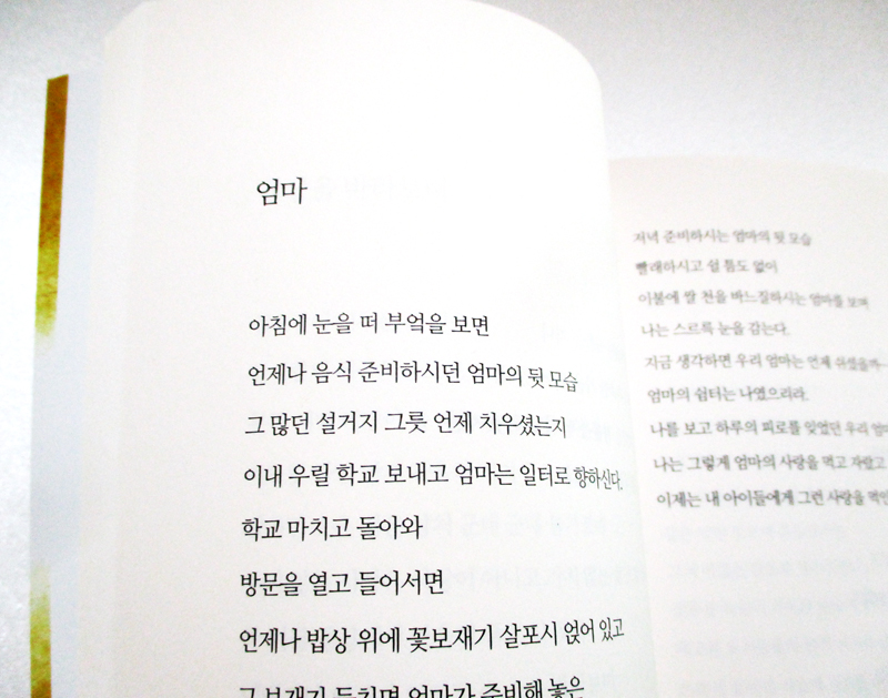 평범한 직장인으로 내가 과연 책을 낼 수 있을 것인가 하는 망설임에 쉽게 용기가 나지 않았습니다.옆에서 힘이 되어 준 아내와 아이들 덕분에 몇 번을 주저하다 용기를 내게 되었습니다.또한 여든 둘이라는 늦은 나이에도 불구하고 한글을 깨우치고 평생 학습원에서 본인의 책을 낸 어머니로부터 자극을 받아 어머니의 기억 속에 영원히 자랑스런 아들로 남고 싶은 마음에 책을 출판하게 되었습니다.수정을 거듭하는 과정에서 거듭 읽다 보면 자꾸 부족한 부분도 발견되지만 어느새 감성에 사로잡혀 뭉클한 순간을 느끼게 되기도 합니다.
