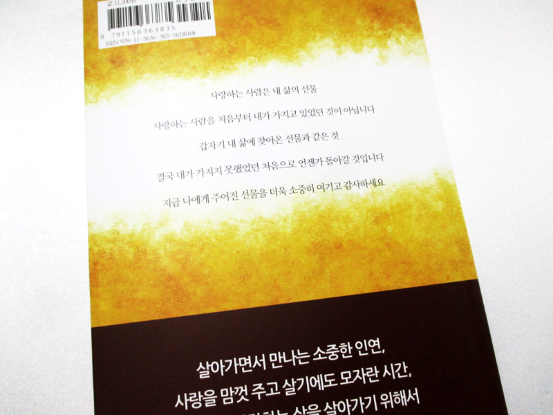 길면 100년 결국 모두 흙으로 돌아갈 존재이기에 내가 만난 소중한 존재에게 사랑을 다 주기에도 아까운 시간, 후회 없이 사랑하는 삶을 살 수 있기 위해서는 꼭 이 책을 읽을 필요가 있다.