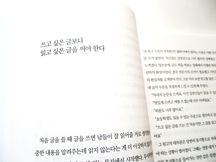 “잘하는 걸 글로 써보는 건 어떨까요? 대표님은 글을 잘 쓰고 나는 말을 잘하니까 그 내용을 펼쳐보는 건 어때요?”