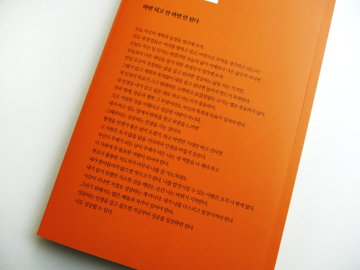 성공은 순서대로 오는 것도 아니고 저절로 되는 것도 아니다. 성공을 향한 열정이 있다면 행운과 주위의 손길이 당신을 도울 것이다. 성공은 되는 것이 아니다. 성공은 하고 싶은 사람이 하는 것이다. 지금 당장 시작하자. 내 인생의 만족과 아름다운 여정을 위해._10