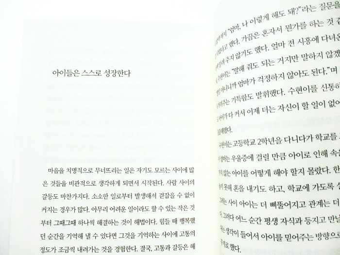 교장으로 재임했던 5년여 세월 동안 지켜본 저자다. 그녀가 다양한 문제로 학교를 떠나려는 아이들의 학업을 유지하던 자신의 경험을 책으로 녹여 냈다. 이 시대 청소년들의 아픔과 문제를 치유하기 위해 고민하고 공부하며 애쓰던 저자의 모습이 눈에 선하다.