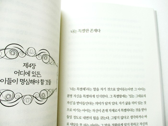 누구나 자기만의 장점과 자신만의 소질이 있다. 단지 아직 찾지 못했을 뿐이다. 물론 자신의 장점과 소질을 발견하기는 쉽지 않으나 지금 당장 능력을 갖추지 못했다는 이유로 좌절하지 않게 아이들을 포용하는 것이 필요하다. 무궁한 가능성을 섣불리 닫아 버리는 일이 일어나지 않도록 말이다. 다만 지금은 한 걸음씩 세상을 향해 당당히 나아갈 수 있도록 도와주어야 할 시기다._39