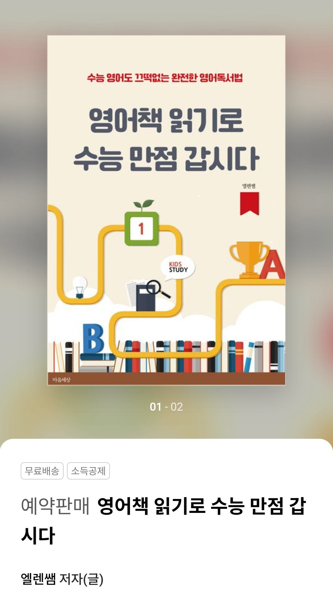 예약판매 영어책 읽기로 수능 만점 갑시다 교보문고에서 예약판매 중입니다 https://product.kyobobook.co.kr/detail/S000214199406 영어책 읽기로 수능 만점 갑시다 | 엘렌쌤 - 교보문고영어책 읽기로 수능 만점 갑시다 | 영어책만 읽어도 수능 만점 가능합니다더는 아이와 영어 때문에 싸우지 마시길 바랍니다. 외워지지 않는 영어 단어들을 붙들고, 아이와 큰소리를 낸다고 하여product.kyobobook.co.kr 책 2024.09.05